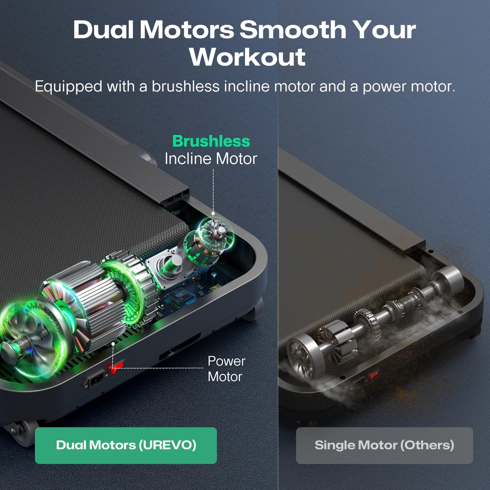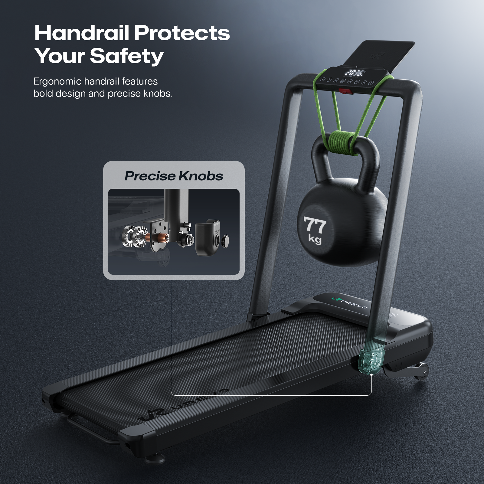 Motoren kan håndtere både rolig gang og mere intensiv power walk eller løb – med hastigheder op til 12 km/t, alt sammen uden at forstyrre familien eller naboer.